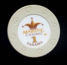 | 120. | Majestic Casino Panama City Panama, 1.00 B&G beige chip, circle inlay, 4Suits mold, crown