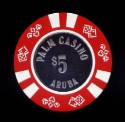 | 129. | Palm Casino Aruba, 5.00 Red chip, Bud Jones, 6 white inserts, DieSuits mold, coin center