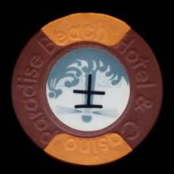 | 131. | Paradise Beach Hotel & Casino Puerto Plata Dom Republic, 1.00 House mold, circle inlay, brown chip, 2 wide orange inserts