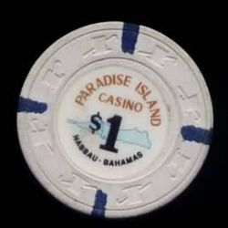 | 132. | Paradise Island Casino Nassau Bahamas, 1.00 White chip, 4 dark blue inserts, island outline in center