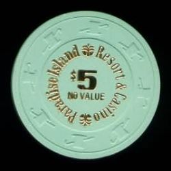 | 133. | Paradise Island Casino Nassau Bahamas, 5.00 Green chip, hotstamped, H&C mold