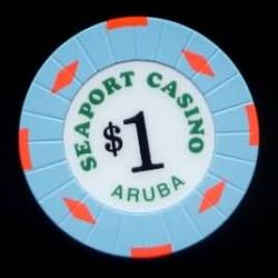 | 140. | Seaport Casino Aruba, Light blue chip, red diamond inserts, 4 long narrow red strip inserts, white center