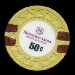 | 142. | Sheraton Lima Lima Peru, 0.50 Yellow chip, HHR mold, 4 red inserts, circle inlay