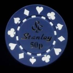 | 144. | Stanley Casino Newcastle England, 0.50 Green chip, white inserts, 12suits mold, hotstamped