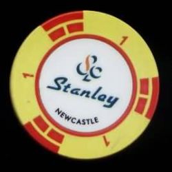 | 145. | Stanley Casino Newcastle England, 1.00 Yellow chip, 3 wide red horizontal inserts, 6 red horizontal inserts, white center