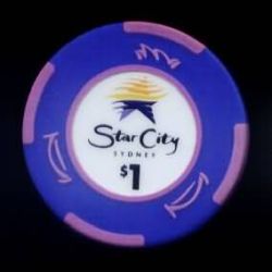 | 146. | Star City Sydney Australia, 1.00 Blue chip, 4 short wide pink inserts, star pattern in center
