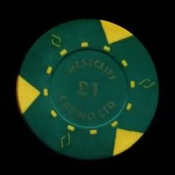 | 148. | Westcliff Casino LTD Westcliff England, 1.00 Green chip, diamond mold, 3 yellow triangle inserts