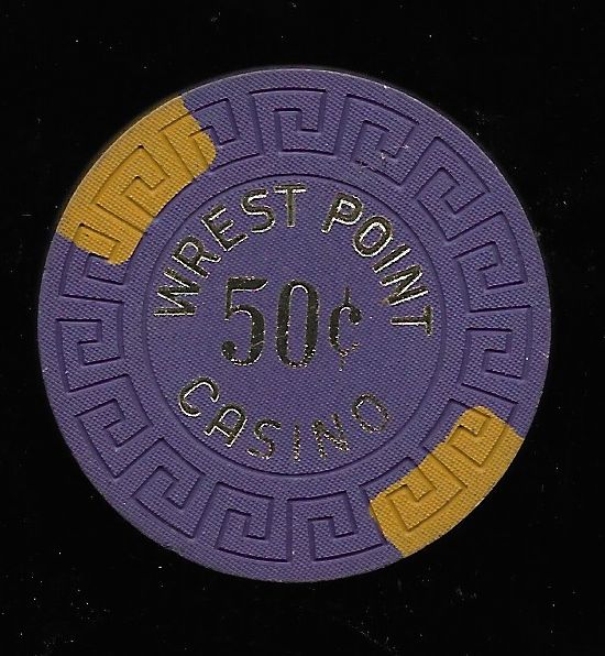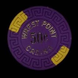 | 152. | Wrest Point Casino Hobart Australia, 0.50 Purple chip, 2 mustard inserts, LK mold, circle inlay, hotstamped