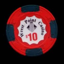 | 153. | Wrest Point Casino Hobart Australia, 10.00 Red chip, 4 green inserts, H&C mold, scalloped inlay
