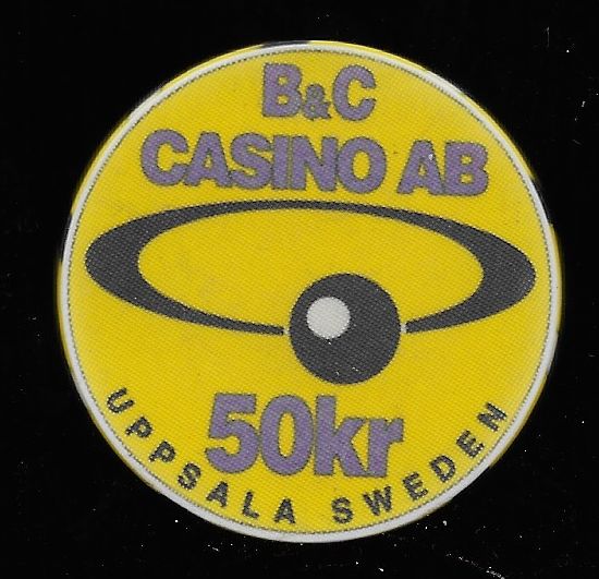 | 12. | B&C Casino AB Uppsala Sweden, 50.00 Smooth finish, yellow chip, orbiting planet, 10 black/white rim stripes