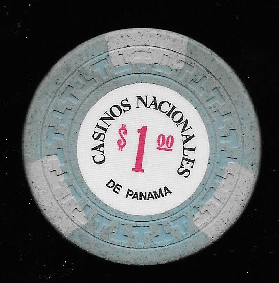 | 44. | Casinos Nacionales Panama, 1.00 Gray chip, T mold, circle inlay, large letters