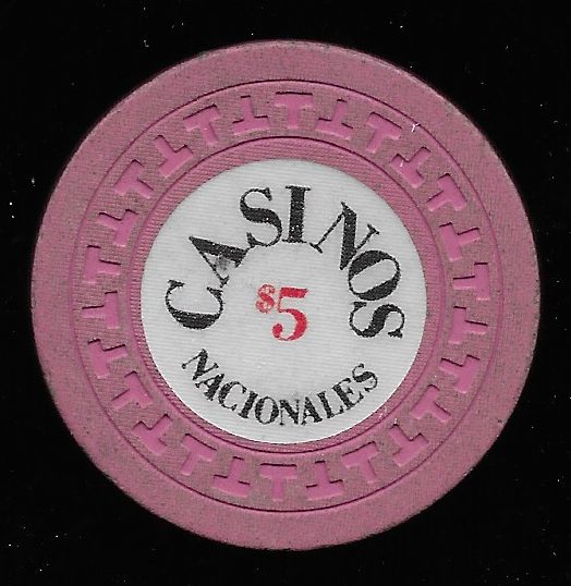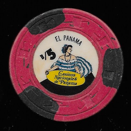 | 49. | Casinos Nacionales Panama, 5.00 Pink chip, T mold, large letters