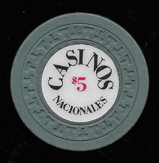 | 54. | Casinos Nacionales Panama, 5.00 Gray chip, T mold, large letters