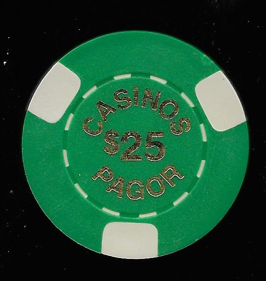 | 62. | Casinos Pagor Caribbean, 25.00 Green chip, 3 white inserts, circle inlay, hotstamped