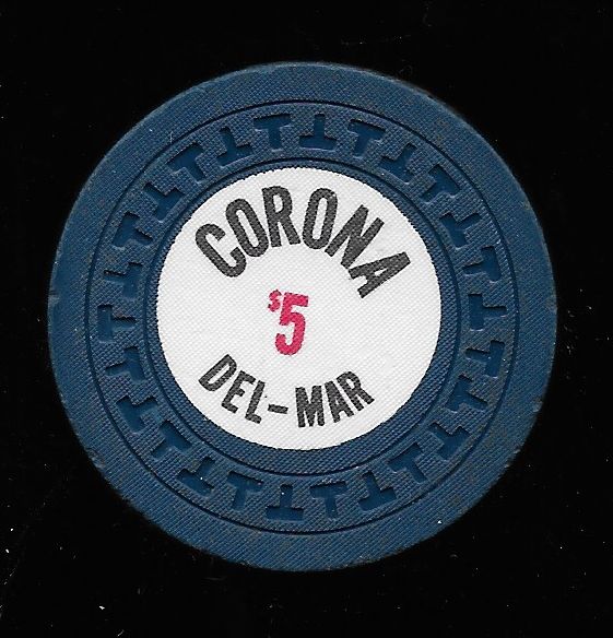 | 73. | Corona Del-Mar Panama, 5.00 Navy chip, T mold, circle inlay