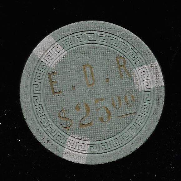 | 89. | Embajador Hotel Casino Dominican West Indies, 25.00 Gray chip, small key mold, 3 offwhite inserts, hotstamped, E.D.R.