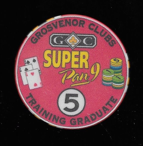 | 101. | Grosvenor Clubs London England, 5.00 Red chip, smooth finish, Super Pan 9, training chip