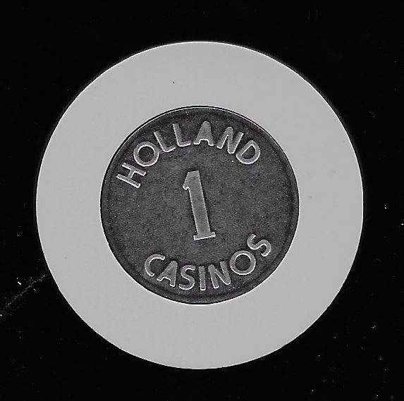 | 103. | Holland Casinos Netherlands, 1.00 Gray chip, plain mold, metal inlay