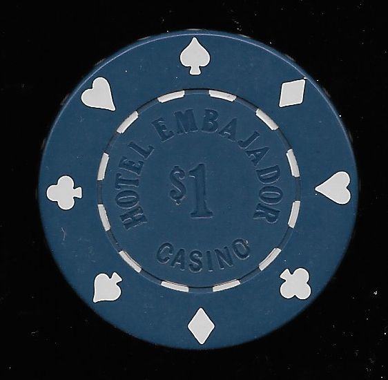 | 107. | Hotel Embajador Dominican West Indies, 1.00 Navy chip, Langworthy inlay, 8Suits mold