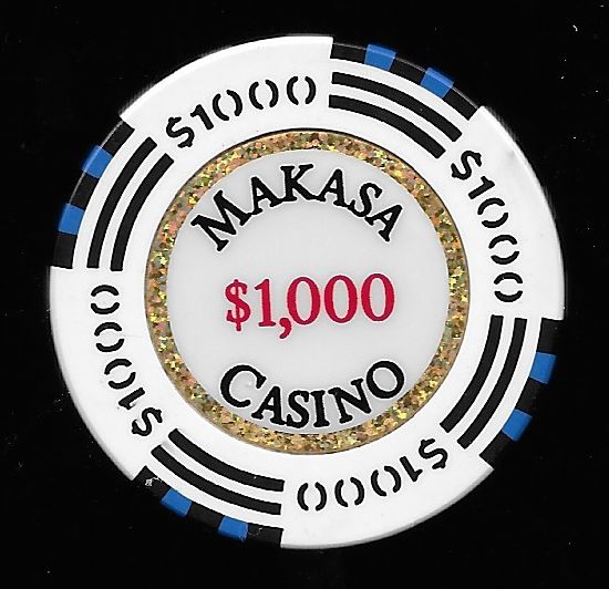 | 121. | Makasa Casino Victoria Falls Zimbabwe, 1000.00 White chip, black inserts, gold foil inlay