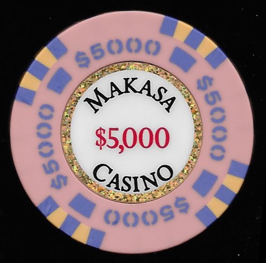 | 122. | Makasa Casino Victoria Falls Zimbabwe, 5000.00 Pink chip, blue/orange inserts, gold foil inlay