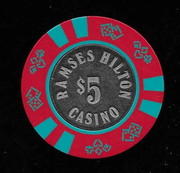 | 137. | Ramses Hilton Cairo Egypt, 5.00 Red chip, circle inlay, DieSuits mold, coin center
