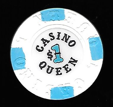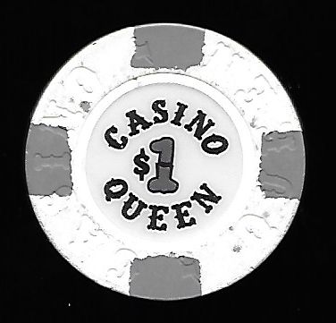 | 3. | Casino Queen East St. Louis IL, 1.00 White chip, 4 gray inserts, House mold, ornate lettering, circle inlay