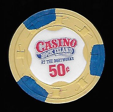 | 4. | Casino Rock Island Peoria IL, 0.50 Tan chip, H&C mold, 3 blue inserts, 3-scalloped inlay, Boatworks