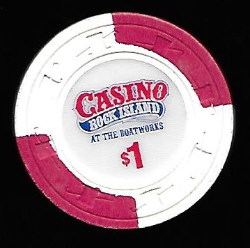 | 5. | Casino Rock Island Peoria IL, 1.00 White chip, H&C mold, 2 wide red inserts, circle inlay, Boatworks