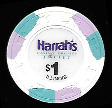 | 7. | Harrah's Joliet IL, 1.00 White chip, 3 blue/pink inserts, circle inlay
