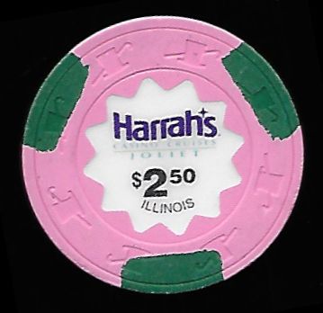 | 8. | Harrah's Joliet IL, 2.50 Pink chip, 3 brown inserts, scalloped inlay