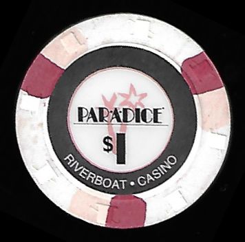 | 12. | Par-a-Dice Casino East Peoria IL, 1.00 White chip, H&C mold, 3 gray/red inserts, circle inlay