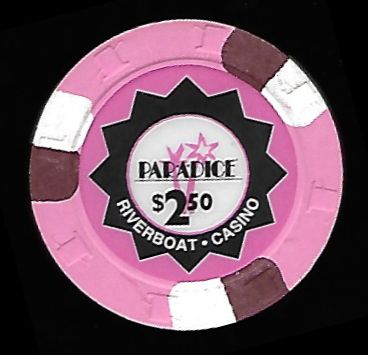 | 13. | Par-a-Dice Casino East Peoria IL, 2.50 White chip, H&C mold, 3 white/brown inserts, circle inlay