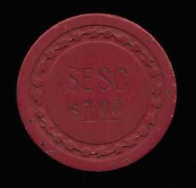 | 16. | Southeast Social Club Chicago IL, 1.00 Red chip, floral mold, hotstamped, SESC