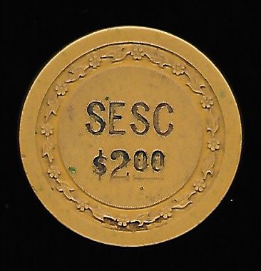 | 17. | Southeast Social Club Chicago IL, 2.00 Yellow chip, floral mold, hotstamped, SESC