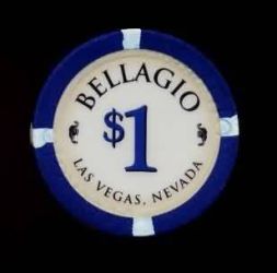 | 19. | Bellagio Las Vegas NV, 1.00 Dark blue chip, tan, circle inlay, large $1