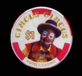 | 42. | Circus Circus Las Vegas NV, 1.00 Satin finish, large clown design, 3 wide red inserts