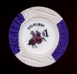 | 54. | Excalibur Las Vegas NV, 1.00 White chip, 2 purple triangle inserts, circle inlay