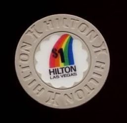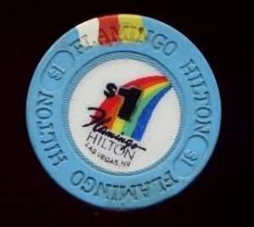 | 69. | Flamingo Hilton Las Vegas NV, 1.00 Five-color rainbow, house mold, circle inlay, 1 white/red/yellow insert