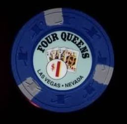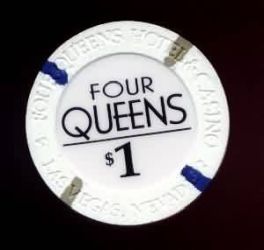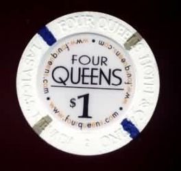| 79. | Four Queens Las Vegas NV, 1.00 White chip, Quattro Regine, house mold, 2 brown / 2 dark blue inserts