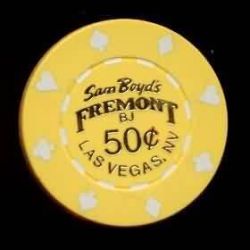 | 89. | Fremont Las Vegas NV, 0.50 Yellow chip, 8 suits inserts, hotstamped BJ