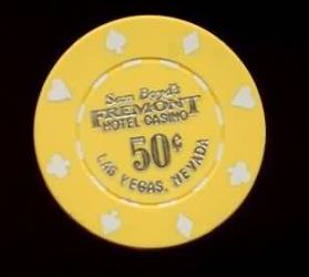 | 90. | Fremont Las Vegas NV, 0.50 Yellow chip, 8 suits mold, hotstamped, Hotel & Casino