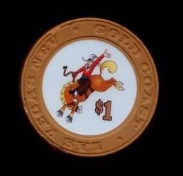 | 97. | Gold Coast Las Vegas NV, 1.00 Tan chip, cartoon of cowboy on horseback