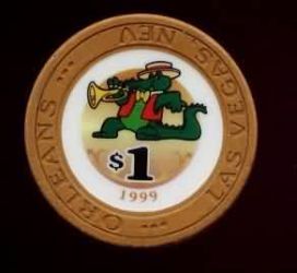 | 194. | Orleans Las Vegas NV, 1.00 Tan chip, trumpet-playing alligator, 1999