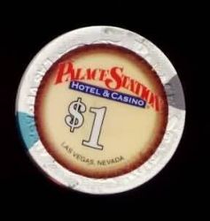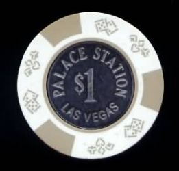 | 199. | Palace Station Las Vegas NV, 1.00 White chip, tan inserts, coin center, DieSuits mold