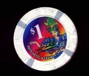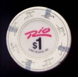 | 224. | Rio Las Vegas NV, 1.00 White chip, 4 gray insert, dancing girl