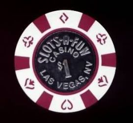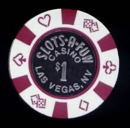 | 246. | Slots-A-Fun Las Vegas NV, 1.00 6 maroon inserts, 4 suits/die inserts, coin center