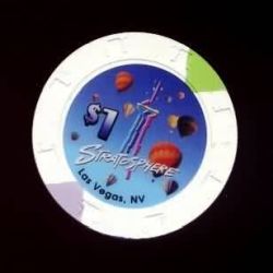 | 255. | Stratosphere Las Vegas NV, 1.00 White chip, top hat mold, 1 green / 1 purple triangular inserts, balloon design