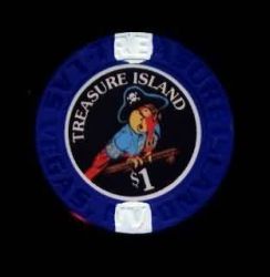 | 268. | Treasure Island Las Vegas NV, 1.00 Dark blue chip, 2 white inserts, Treasure Island mold, new TI center design