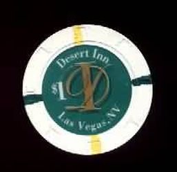 | 45. | Desert Inn Las Vegas NV, 1.00 White chip, H&C mold, 2 yellow / 2 dark green inserts, circle inlay